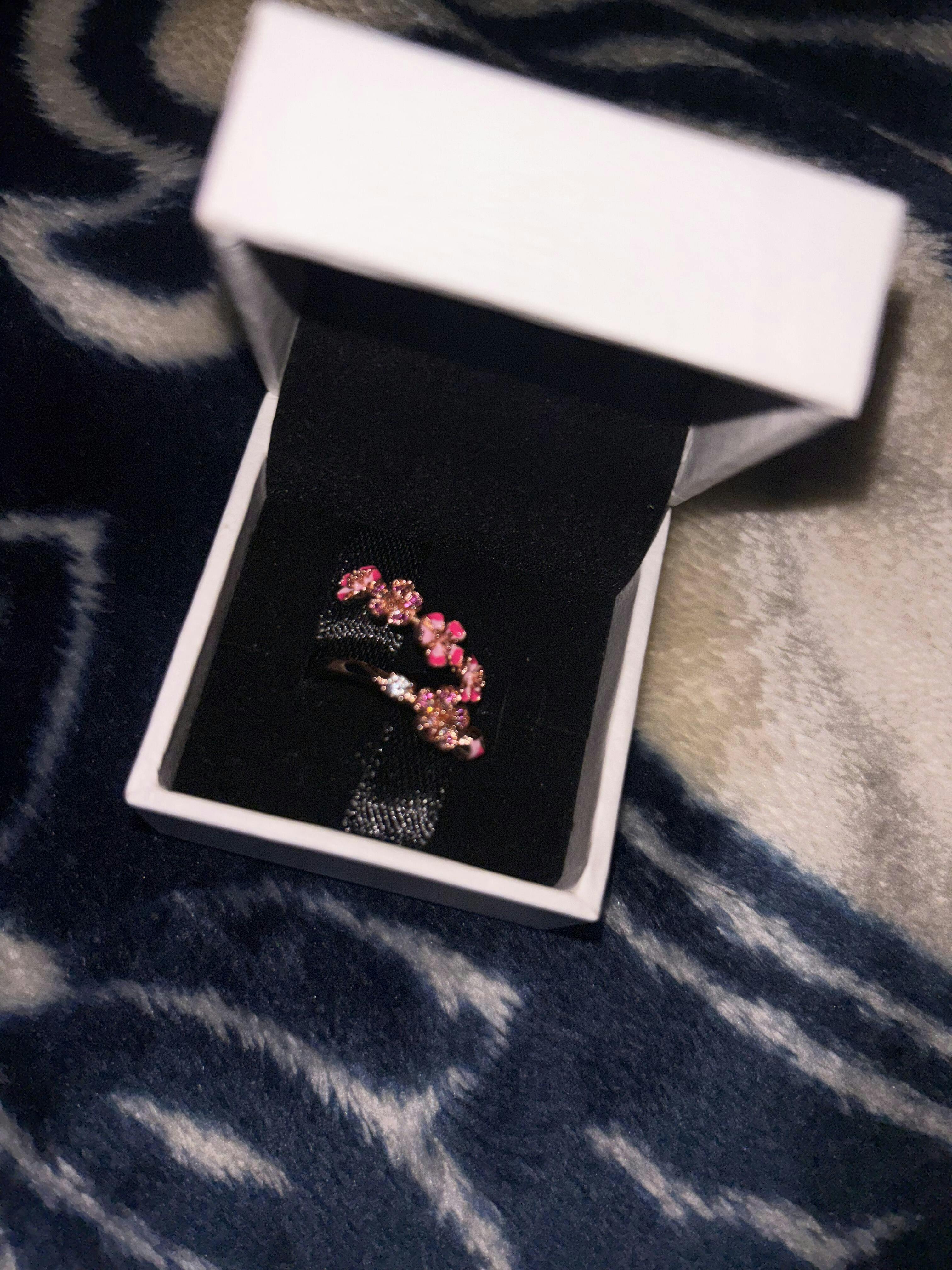Inspired by the delicate beauty of blooming peach blossoms, this stunning ring captures the essence of spring in full bloom. Crafted from high-quality white copper and finished with a warm rose gold tone, it features sparkling cubic zirconia stone and vivid pink and white hues that mimic the petals and buds of real flowers.